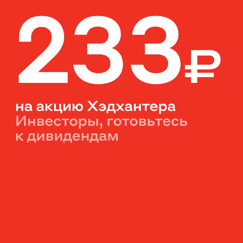 Хорошие новости с утра: Хэдхантер объявил дивиденды 💰 Совет директоров рекомендовал выплатить 233 рубля на акцию по итогам 2025 года. Это 7,8% доходности. Дивиденды должны утвердить акционеры на со