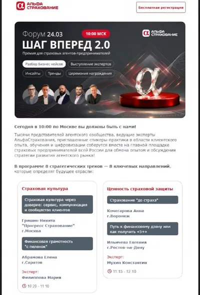 ⭐️24 марта делаем «ШАГ ВПЕРЕД» вместе! Дорогие АльфаАгенты! 24 марта в 10:00 МСК вы должны быть с нами на онлайн форуме «ШАГ ВПЕРЁД 2.0»! Тысячи представителей агентского сообщества, ведущие экспе