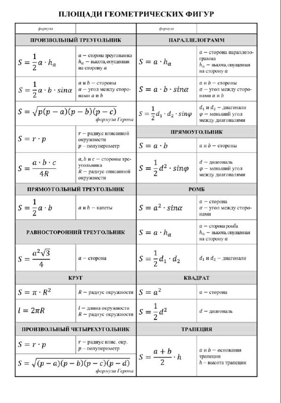 Площади геометрических фигур