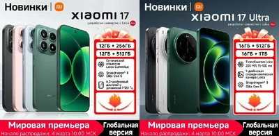 🟥 Цены на смартфоны Xiaomi 17 Актуализируем цены на смартфоны серии Xiaomi 17 по состоянию на вечер 5 марта. Премьерные скидки продлятся до 16 марта 09:59 МСК. 📱 Xiaomi 17 💸 12035₽ от 92274₽ 🎟 2