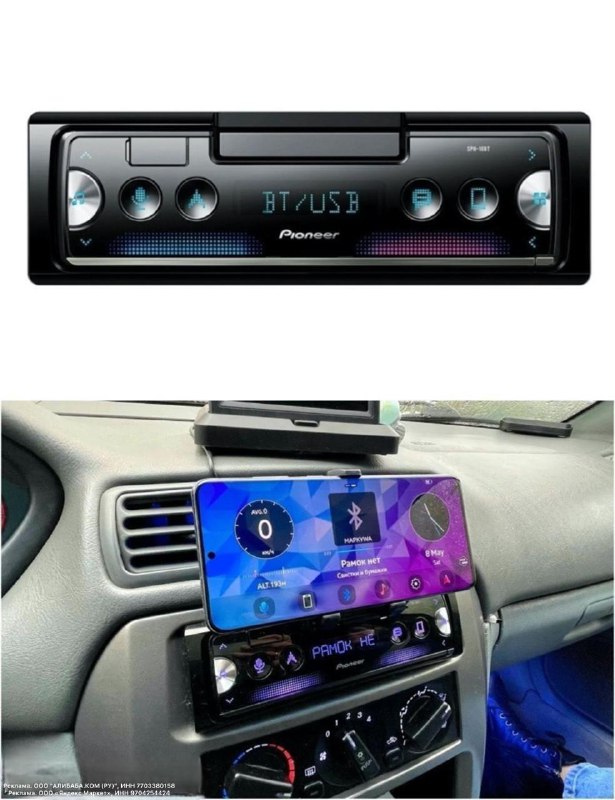Оригинальная магнитола Pioneer с выдвижным держателем для смартфона, ездить с навигатором будет очень удобно. Отзывы положительные. Самое главное, за что хвалят пионер, это, конечно, качество звука. Д