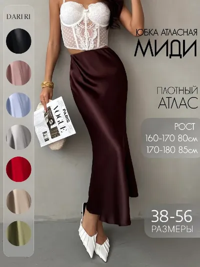 Шелковая юбка миди Артикул - 181088862 Рейтинг - 4,7⭐️ Юбка миди атласная на резинке нарядная – женская одежда для любого времени года. Эта стильная юбка миди как из pinterest. Прямого А силуэта с в