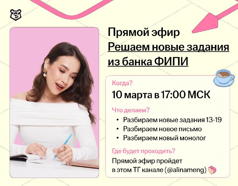 🚨Прямой эфир: решение новых заданий из банка ФИПИ по английскому языку🇬🇧 💡Когда? 10 марта (вторник) 17:00 МСК 💡Что будет? 👉 разберем изменения в заданиях 13-19 👉 выработаем стратегию решени