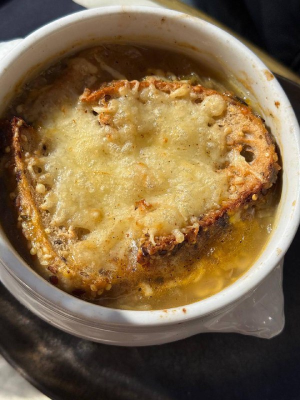 Подарочек нам всем в эту промозглую погоду. Средний админ привез из Лиона рецепт французского лукового супа, происхождение которого приписывают то Парижу, то Лиону. Жирный и почти как мой похмельный