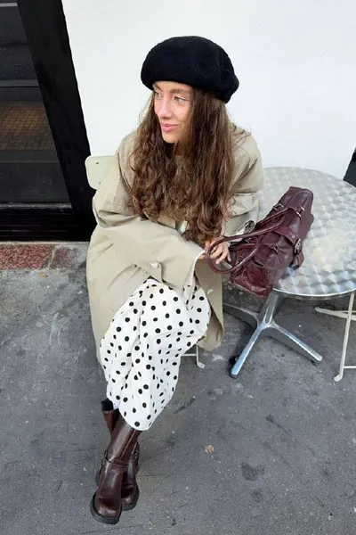 Небольшое вдохновение с Pinterest ❤ Ссылки: тренч, свитер, юбка, сумка, сапоги, берет