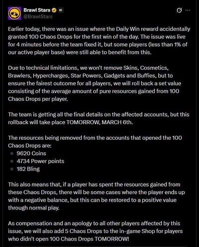 🔈 100 Хаос Дропов были выданы БЕСПЛАТНО В течение 3 минут за первую победу дня можно было получить 100 Хаос Дропов. Некоторые игроки успели их получить. Будет ли компенсация? 🤬 - разрабы криворук