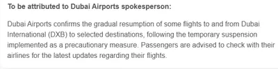 Международный аэропорт Дубая постепенно возобновляет рейсы по отдельным направлениям после временной приостановки. Пассажирам рекомендуют уточнять актуальную информацию у своих авиаперевозчиков. @Al