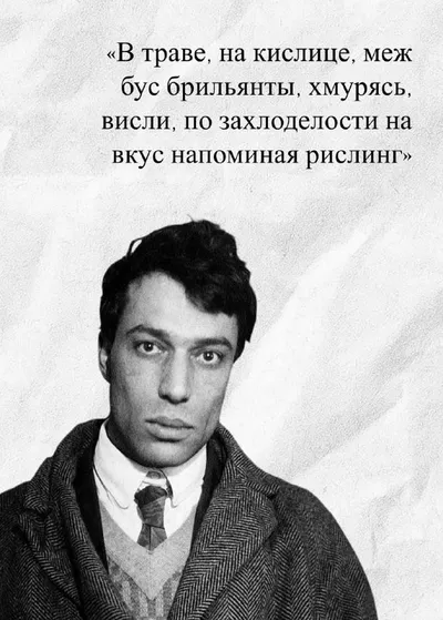 Ладно, вот вам молодого красивого Бориса Леонидовича. Строка про рислинг из стихотворения «Имелось». Он там, кстати, дважды упоминается. Вообще стихотворение такое, с надрывом — как положено эпохе.