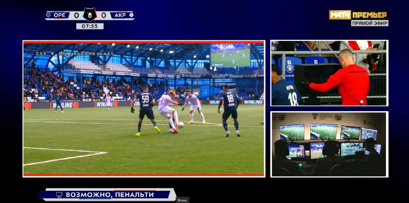 Оренбург — Акрон Первый матч в РПЛ — первый экран через 6 минут. Подсечку не заметил в штрафной площади. Согласился с этим, поэтому ему предложили посмотреть всю атаку, которая началась с очевидног