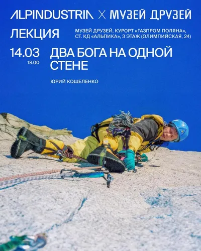 Лекция «Два бога на одной стене» Юрий Кошеленко очень тонко чувствует горы и преобразует это чувство в философию не только в горах, но и в обычной жизни. На предыдущей лекции Юра погрузил слушателей