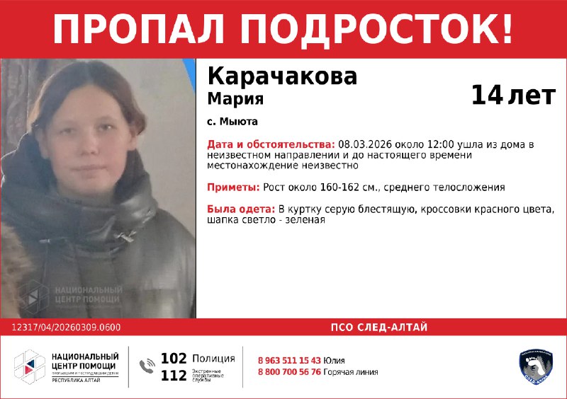 Внимание, пропал подросток! Подробности в ориентировке.