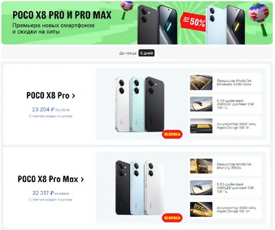 На AliExpress идёт распродажа смартфонов POCO, Xiaomi и Redmi, посвящённая выходу новых моделей POCO X8. Poco X8 Pro оснащён аккумулятором 6500 мАч и основной камерой Sony IMX882 с оптической стабил