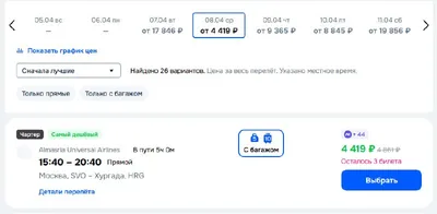На завтра билеты из Москвы в Хургаду продают по 4400 рублей. ) Даже не думал, что такое может быть. Я вот покупал за 15, думая, что это очень дёшево.