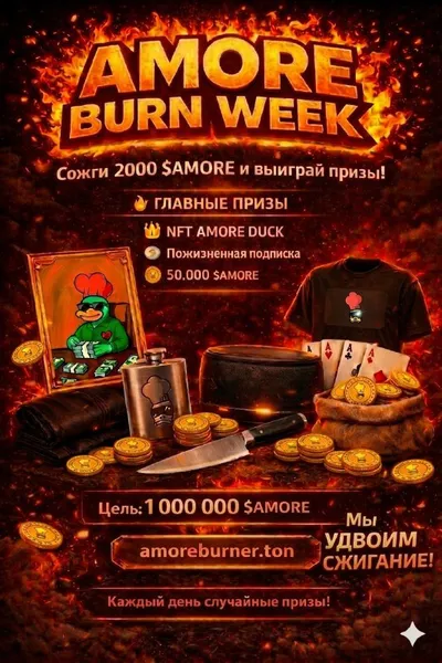 🔥 AMORE BURN WEEK Мы создали официальный адрес для сжигания токенов: amoreburner.ton Любой участник может отправить туда $AMORE и уменьшить общий supply. Чтобы сделать это интереснее — запускаем