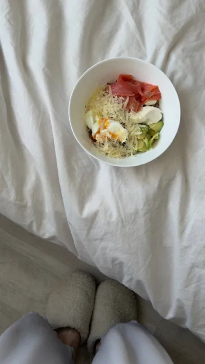 мой самый насыщенный завтрак в последнее время 🤍гречка 100гр в сухом виде+ авокадо,форель с/с, сыр легкий 17%, яйцо, творожный сыр легкий sveza можно делать различные миксы с разным гарниром и до