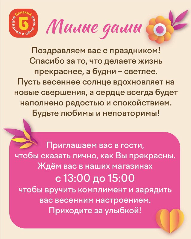 Ждем вас 8 марта по адресу: 💛г. Благовещенск, ул. Театральная, 79 💛г. Райчихинск, ул. Гагарина, 4 Реклама. ООО «ДВ НЕВАДА», ИНН 2723205733. Erid:2VfnxxyUhY5