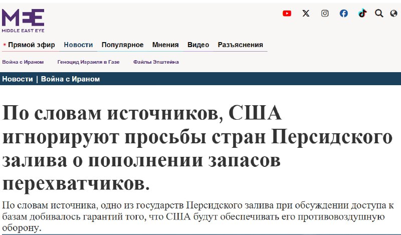Боеприпасов для вас нет: США отказывают странам Персидского залива в их запросах на пополнение ракет ПВО к американским системах. Дошло до того, что некоторые страны залива ставят обеспечение воздушн