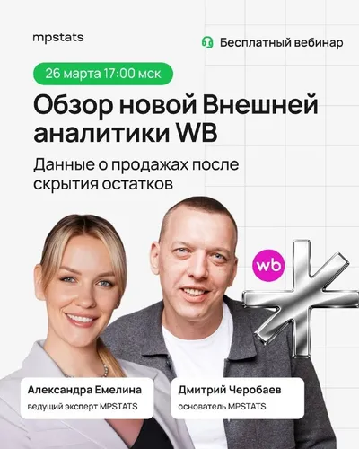 🤘 Обзор новой Внешней аналитики WB: данные о продажах после скрытия остатков 26 марта в 17:00 мск на бесплатном вебинаре Дмитрий Черобаев и Александра Емелина подробно расскажут, как использовать да