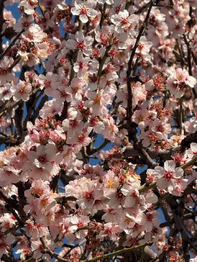 Расцветающие улицы Анапы🏡 Ещё один невероятно душистый миндаль🌸 А пчёлы оказались правильными и не приняли меня за конкурента, к счастью)🐝