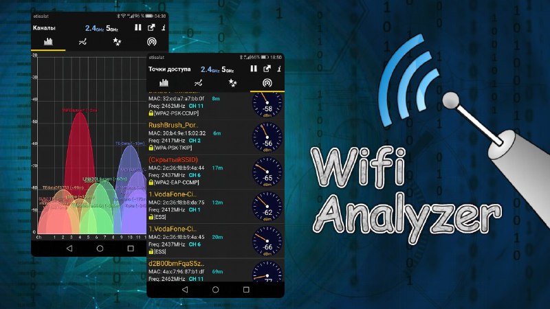 WiFi Analyzer - v6.8 Актуальная версия от 18 ноября 2025 --------------------------------------------- Ⓘ Инструмент для диагностики и оптимизации WiFi. Приложение подскажет, какая сеть работает быстре