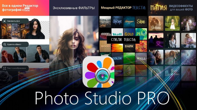 Photo Studio PRO ↻ Обновление до версии v2.9.2.4803 --------------------------------------------- Ⓘ Мощный и простой в использовании фоторедактор. Огромная коллекция фильтров и эффектов, стикеров и Pi
