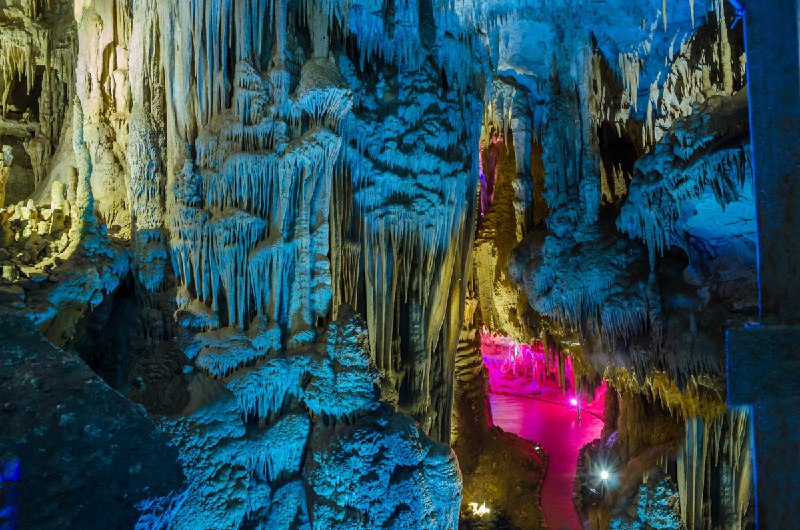 Знаешь, какая пещера в Грузии самая большая? Правильный ответ: пещера Прометея Для туристов открыта только ее десятая часть, но прогулка по ней занимает почти час. Внутри есть подземные озёра и рек