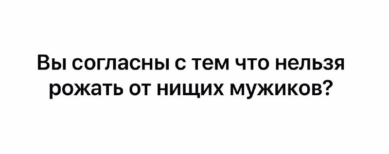 Меня сейчас так разорвало от этого вопроса и в целом от рилсов на эту тему , что я писала этот текст клацая по буквам со скоростью света . «Не рожайте от нищих мужиков, не плодите нищету» - каждый