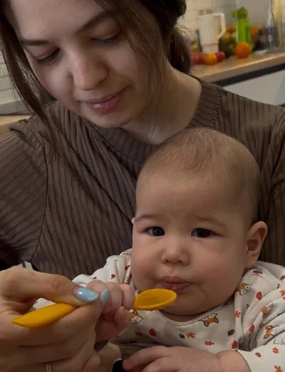 Это случилось! Официально первый день прикорма😅 неофициально Даня уже пробовал обсосать морковку, яблоко, апельсин и клубнику🤣 Смонтируем видео и выложим, а пока ставьте ставки, понравился ли Дане