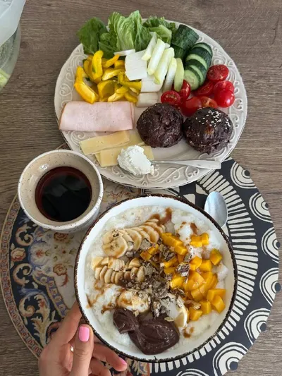 Сегодня было вкусно 🤤 как и всегда, когда рацион домашний! Нравится мне этот стиль с двумя овсянками 😂 вроде как и попа растет, будем считать, что от них 👀 Скопировала на ужин вчерашнее вечернее