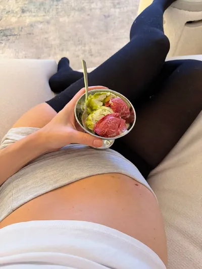 Всё, что вам надо знать о моем питании сейчас: Во 2 триместре постоянно хочется сладенького и аппетит стал более активным 🫢 Из-за варикоза приходится носить компрессионные чулки постоянно, вены на