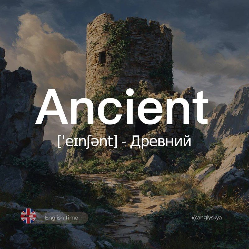 Ancient (ˈeɪnʃənt) - Древний Похожие слова: 🔵Old (oʊld) - старый 🔵Historical (hɪˈstɔːrɪkəl) - исторический 🔵Antique (ænˈtiːk) - антикварный 🔵Primitive (ˈprɪmɪtɪv) - примитивный Пример употреблен