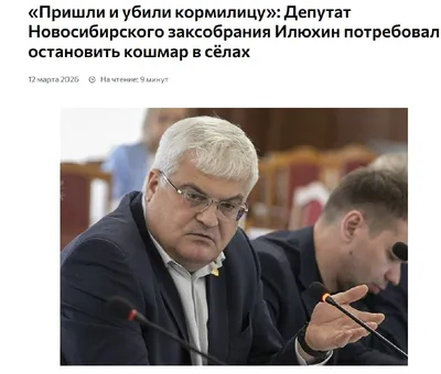 Депутат Новосибирского заксобрания Илюхин потребовал "остановить кошмар в сёлах" https://temaglavnoe.ru/russia/15650/ «Уважаемые коллеги, я обратился уже в прокуратуру, не могу здесь промолчать, пос