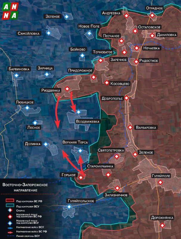 ❗️ Российские войска зачищают населенный пункт Рождественское (Риздвянка) в Запорожской области. Сейчас бойцы армии России находятся всего в 4 км от окраин Любицкого — одной из основных целей наступа