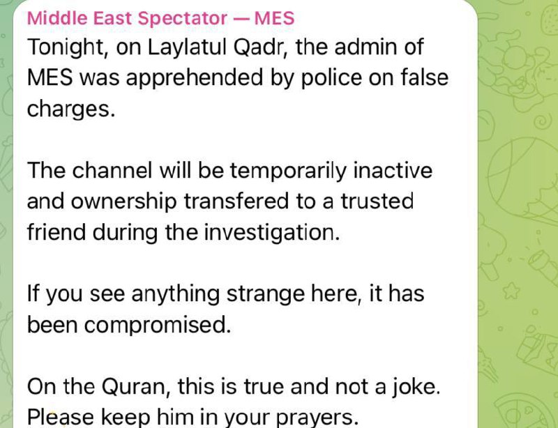 ❗️В Иордании по ложным обвинениям арестовали администратора Telegram-канала Middle Eastern Spectator. Элиас, гражданин Ирана, приехал в Иорданию по деловым вопросам ещё до начала войны. После начала