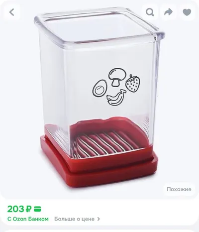 Девочки сохраняйте , нашла на озон за приятную стоимость 203р 🔥 Компактная овощерезка с небольшой ёмкостью удобна в использовании, легко моется. Идеальна для быстрой нарезки грибов, клубники, банано