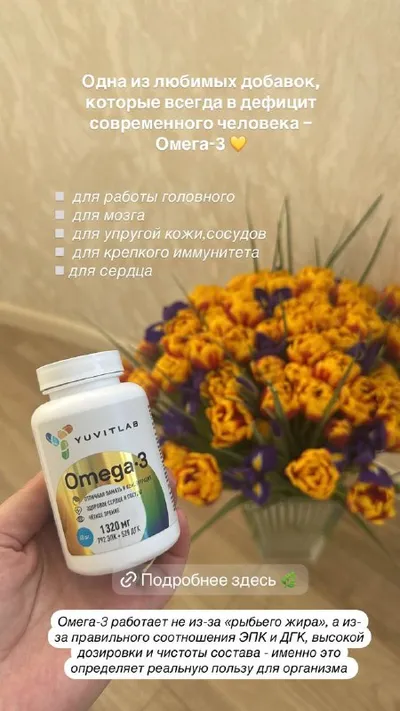 Омега-3 — одна из тех добавок, где важны не просто миллиграммы, а соотношение жирных кислот. В YUVITLAB Омега-3 хороший баланс ЭПК и ДГК — именно тех кислот, которые поддерживают сердце, мозг, сосуды