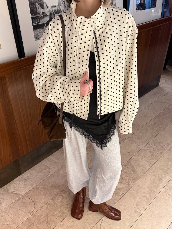 Кто там устал от горошка? Я нет 😂 • ветровка • топ с кружевом Befree • джоггеры Rela Story • обувь • сумка от феи с Авито ❤️ — нраааавится