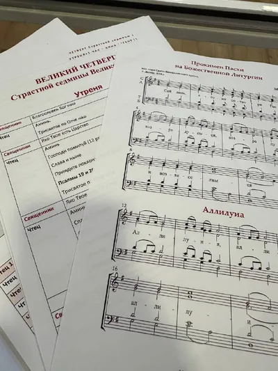 😀Готовлюсь к службам: 1) распечатала таблицы, чтоб удобно было ориентироваться по ходу служб (певчим и чтецам) 2) распечатала ноты стихир, трипеснцев, ирмосы канонов (Сеченое сечется и Волною морско