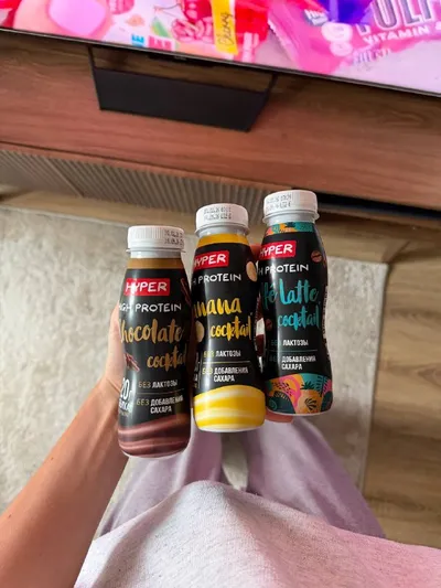пробовали уже новинки от hyper?) от этой фирмы есть популярные пудинги шоколадный и ванильный коктейли со вкусом латте, шоколада и банана, без лактозы, КБЖУ на 100 мл 55 ккал/8/0,4/5,2 а всего в буты