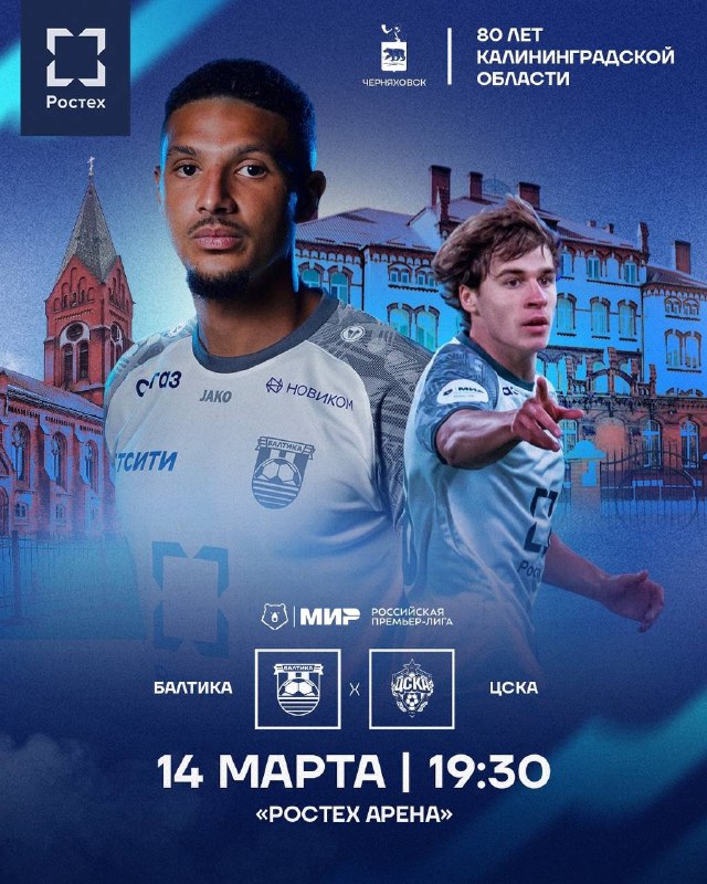 В субботу «Балтика» проведёт домашний матч с ЦСКА ⚽️ 🗓️ #14_марта, 19:30 📍 Ростех Арена В прошлом году команды пересекались трижды. Первая встреча, домашняя в Кубке России, сложилась для нас неуд