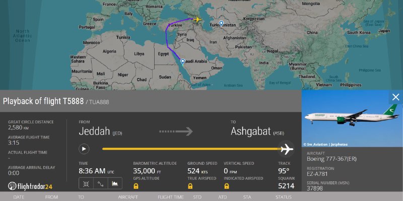 ✈️ Авиакомпания «Туркменистан» совершила первый рейс в Джидду после начала войны в Иране 6 марта самолёт Boeing-777 забрал застрявших в Саудовской Аравии туркменских паломников 🤲🏽