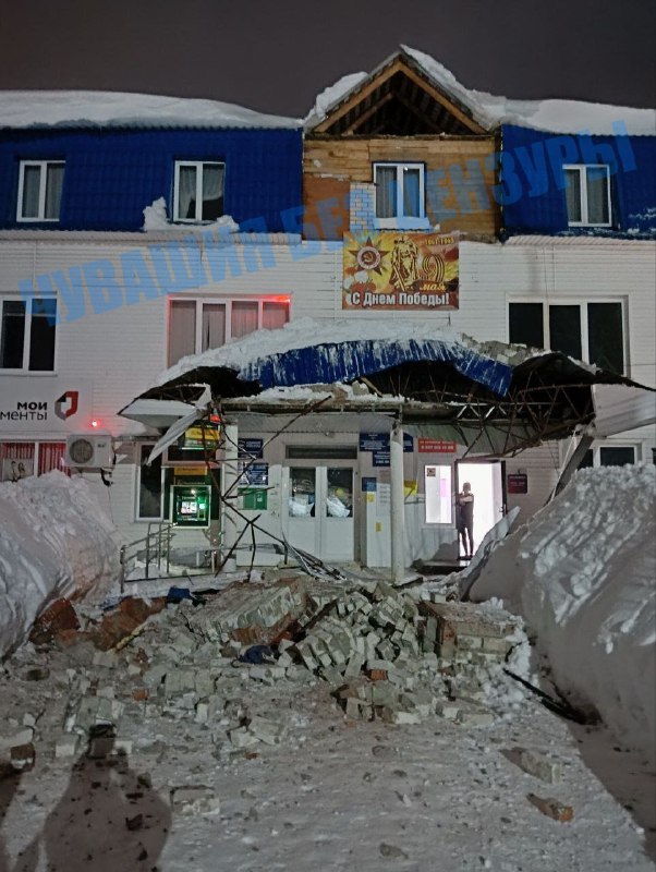 Стена здания с офисом «Единой России» рухнула в Чувашии В селе Яльчики Чувашской Республики из-за неубранного снега обрушилась часть стены здания, где находятся отделение партии «Единая Россия» и дру