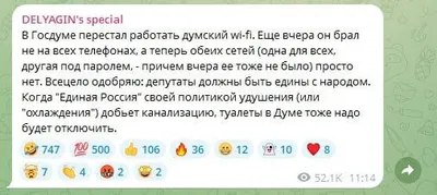 🤡 Интернет отключили в Госдуме У депутатов не работает даже мессенджер MAX. Справедливоросс Михаил Делягим предложил «Единой России» добиться своей политикой «удушения» отключения туалетов в Госдуме