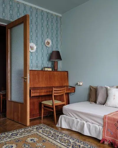 Не смогла пройти мимо квартиры по проекту Екатерины Бурдиной, хоть мне понятным образом не хватает винтажа. Сохраняем панно за изголовьем кровати от Fresq #antiqva_inspiration