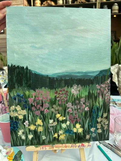 Сегодня ходила на мк по рисованию, в последний раз краски в руки брала в начальной школе) Какое же наслаждение просто выбросить все из головы и просто возить кистью по холсту🤍 Хоть в референс и не п