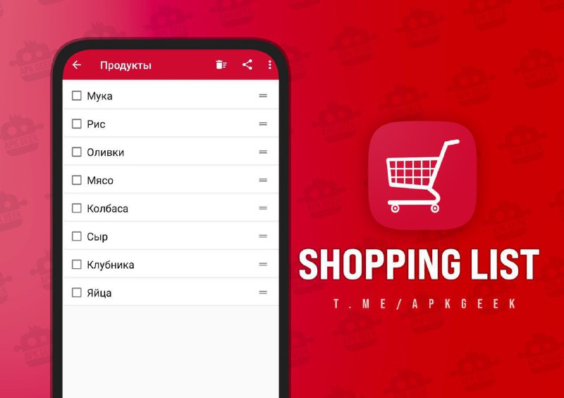 Shopping List - незаменимое приложение для походов в магазин, очень удобный список покупок. 📤 Версия: 3.16 📁 Категория: #Планировщики 🤖 Android: 6.0 и выше 🔑 Моды: PRO версия @ApkGeek