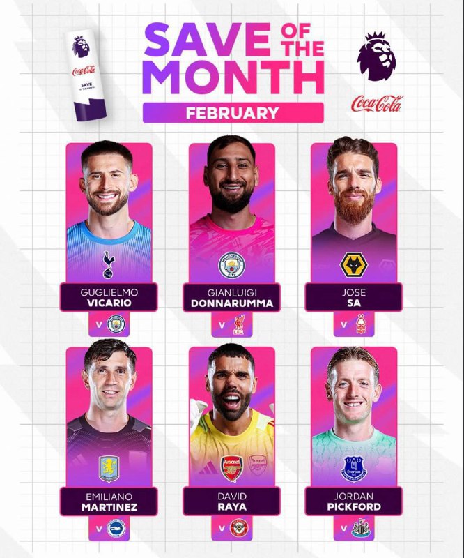 📊🦁 Официальные кандидаты на гол февраля и сэйв февраля в АПЛ: