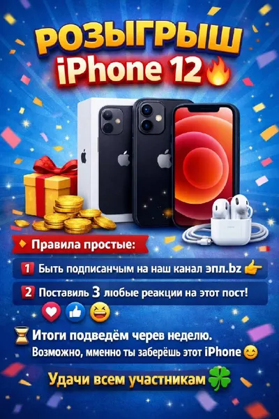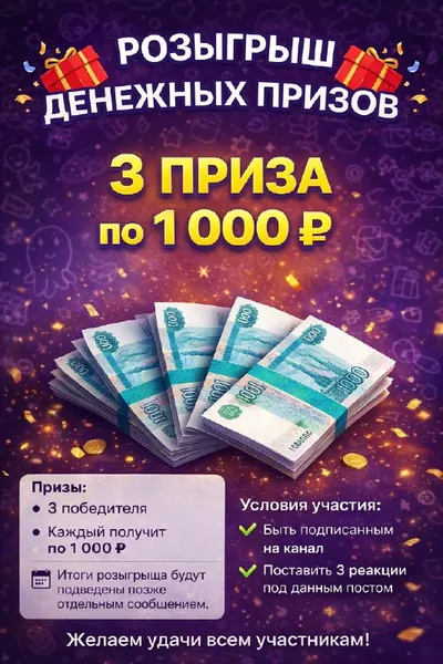 🎁 РОЗЫГРЫШ ДЕНЕЖНЫХ ПРИЗОВ Объявляем розыгрыш призов среди подписчиков канала. 🏆 Призы: • Каждый получит по 1 000 ₽ 📋 Условия участия: ✔ Быть подписанным на канал эпл.bz ✔ Поставить 3 реакции по