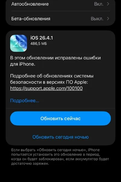 iOS 26.4.1 уже доступна: Apple выпустила срочное обновление без подробностей. Apple выпустила обновление iOS 26.4.1 для всех пользователей. Новая версия получила номер сборки 23E254 и направлена на