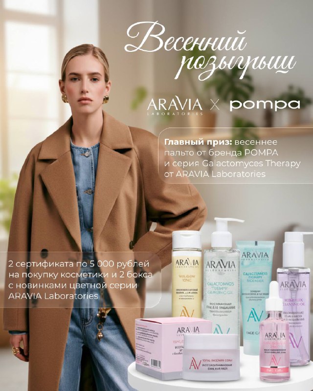 🦋POMPA x ARAVIA: КОНКУРС-ПРЕОБРАЖЕНИЕ В честь 8 марта мы объединились с друзьями — брендом уходовой косметики ARAVIA Laboratories и решили разыграть сразу 5 призов! 5 победителей получат: 🩷 1 м